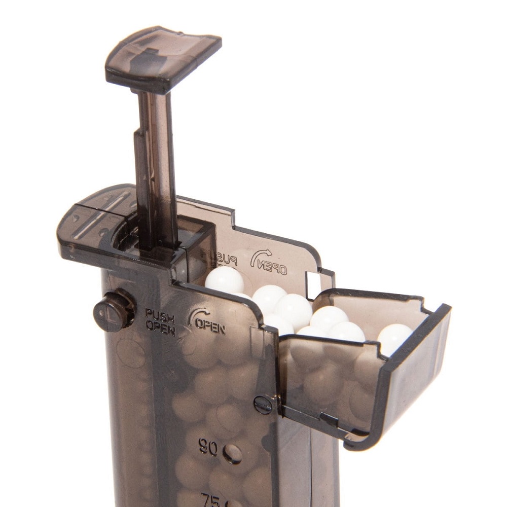 Carregador compatível com a maioria dos Magazines de Airsoft, permite armazenar de 90 munições 6mm e a mais rápida recarga de seu magazine!