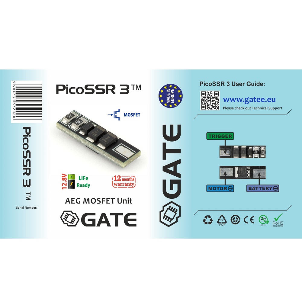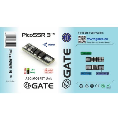 PicoSSR 3 é o menor MOSFET do mundo para AEG. Embora suas dimensões sejam apenas 4x6x21 mm, o PicoSSR 3 é muito poderoso. Possui ótimos parâmetros elétricos e mecânicos e cabe réplicas com pouco espaço para MOSFET.